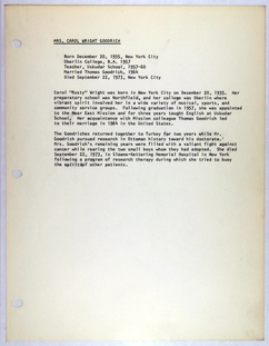 Memorial record for Carol W. Goodrich, an employee of the American Board