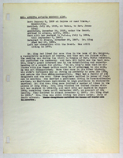 Memorial record for Annetta A.M. King, an employee of the American Board