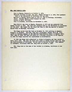 Amerikan Bord Heyeti (American Board), Istanbul, "Memorial records for Mary M. King," American Research Institute in Turkey, Istanbul Center Library, online in Digital Library for International Research Archive, Item #17173, http://www.dlir.org/archive/items/show/17173 (accessed April 30, 2026).