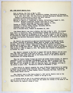 Amerikan Bord Heyeti (American Board), Istanbul, "Memorial records for John E. Merrill," American Research Institute in Turkey, Istanbul Center Library, online in Digital Library for International Research Archive, Item #17275, http://www.dlir.org/archive/items/show/17275 (accessed April 30, 2026).
