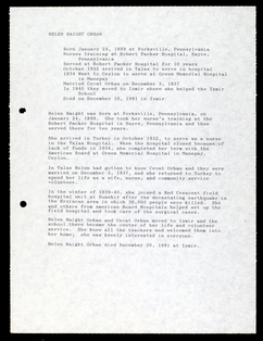 Amerikan Bord Heyeti (American Board), Istanbul, "Memorial records for Helen Haight Orhan," American Research Institute in Turkey, Istanbul Center Library, online in Digital Library for International Research Archive, Item #17322, http://www.dlir.org/archive/items/show/17322 (accessed April 30, 2026).