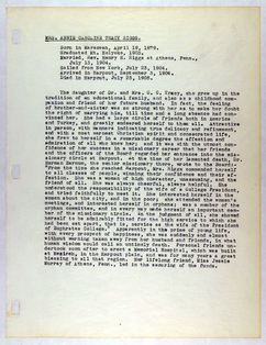 Memorial record for Annie C.T. Riggs, an employee of the American Board