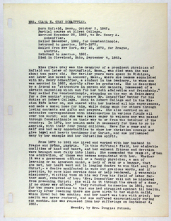 Memorial record for Clara E.G. Schauffler, an employee of the American Board