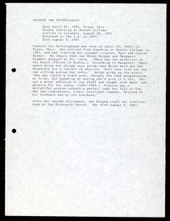 Memorial record for Frances Orr Severinghaus, an employee of the American Board