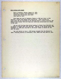 Amerikan Bord Heyeti (American Board), Istanbul, "Memorial records for Myrtle O. Shane," American Research Institute in Turkey, Istanbul Center Library, online in Digital Library for International Research Archive, Item #17445, http://www.dlir.org/archive/items/show/17445 (accessed April 30, 2026).