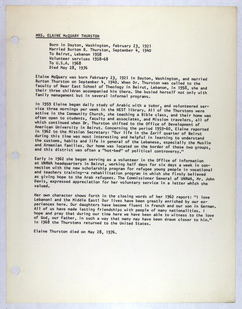 Memorial record for Elaine M. Thurston, an employee of the American Board