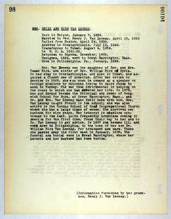 Memorial record for Emily A.B. Van Lennep, an employee of the American Board