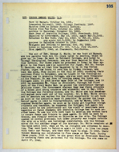 Amerikan Bord Heyeti (American Board), Istanbul, "Memorial records for George E. White," American Research Institute in Turkey, Istanbul Center Library, online in Digital Library for International Research Archive, Item #17488, http://www.dlir.org/archive/items/show/17488 (accessed April 30, 2026).