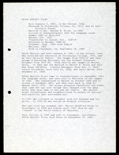 Amerikan Bord Heyeti (American Board), Istanbul, "Memorial records for Edith Hazlett Wiley," American Research Institute in Turkey, Istanbul Center Library, online in Digital Library for International Research Archive, Item #17490, http://www.dlir.org/archive/items/show/17490 (accessed April 30, 2026).