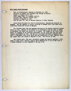 Amerikan Bord Heyeti (American Board), Istanbul, "Memorial records for Sarah E. Woodward," American Research Institute in Turkey, Istanbul Center Library, online in Digital Library for International Research Archive, Item #17494, http://www.dlir.org/archive/items/show/17494 (accessed April 30, 2026).