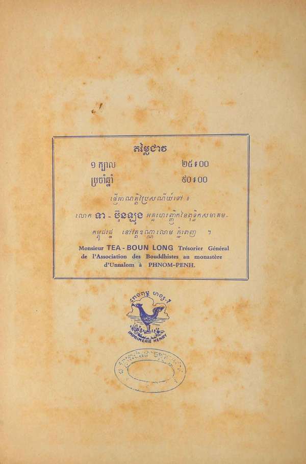 Phnom Penh : L'Association des Bouhddhistes-Centre du Cambodge, 1967