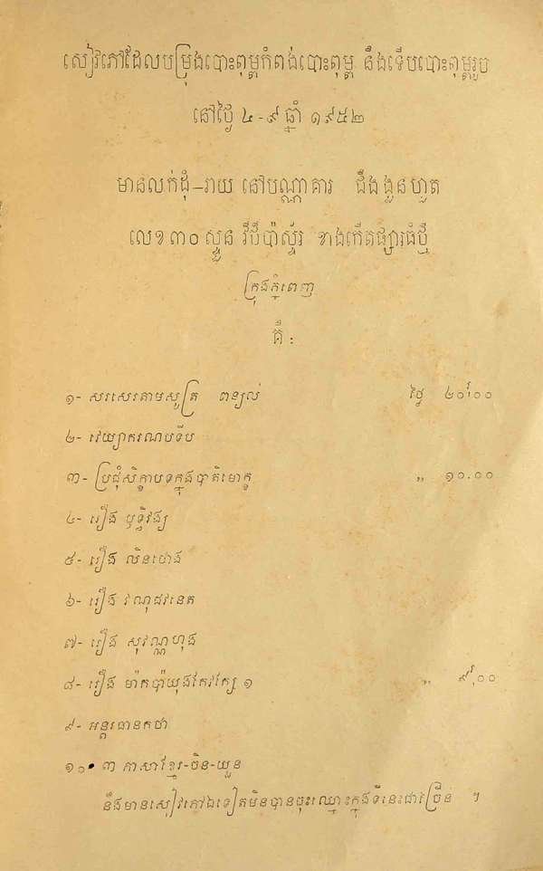 Phnom Penh : Chhing Ngoun Hout Book Shop, 1952