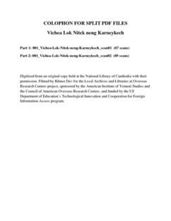 Kim Set, "Vichea Lok Nitek neng Karneykech," online in Digital Library for International Research Archive, Item #47, http://www.dlir.org/archive/items/show/47 (accessed April 30, 2026).
