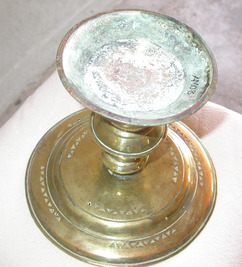 Shallow tray mounted on weighted pedestal, with pierced decorative bands, used for serving betel leaves,