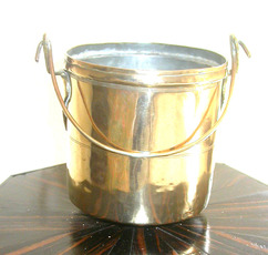 Milk pot with handle, cylindrical form with slightly rounded base.