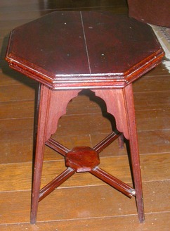 Hexagon shaped side table, supported on four tapered legs with cross stretchers