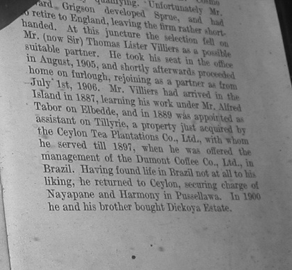 From the open book page The History of the Firm of George Steuart, Ceylon, in a glas case in the library, of Adisham Monastery