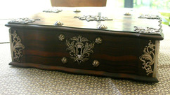 Small box with hinged lid, with applied silver knobs, escutcheon and hinges