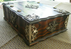 Small box with hinged lid, with applied silver knobs, escutcheon and hinges