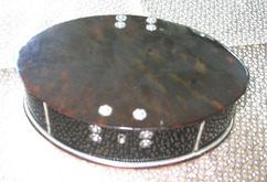 Small oval box with flat hinged lid, with applied silver knobs, escutcheon and hinges