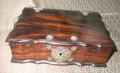 Bible box with slanting hinged top, with applied silver knobs, escutcheon and hinges