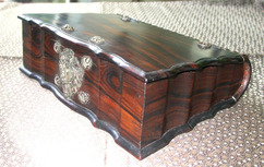 Bible box with slanting hinged top, with applied silver knobs, escutcheon and hinges
