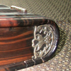 Bible box with slanting hinged top, with applied silver pierced decorative plaques, escutcheon and hinges