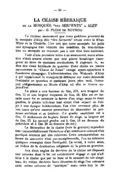 La chaise hébraique de la Mosquée "des Serpents" a Alep