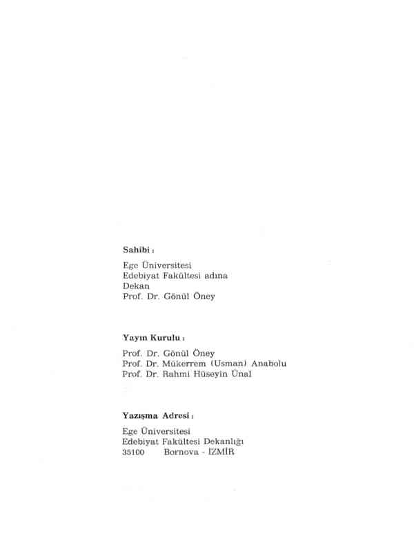 Ege Üniversitesi Edebiyat Fakültesi Bornova 35040 İzmir