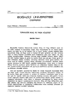 Kuran, Aptullah, "Tophanede Kılıç Ali Paşa Külliyesi," online in Digital Library for International Research Archive, Item #2714, http://www.dlir.org/archive/items/show/2714 (accessed April 30, 2026).