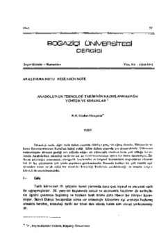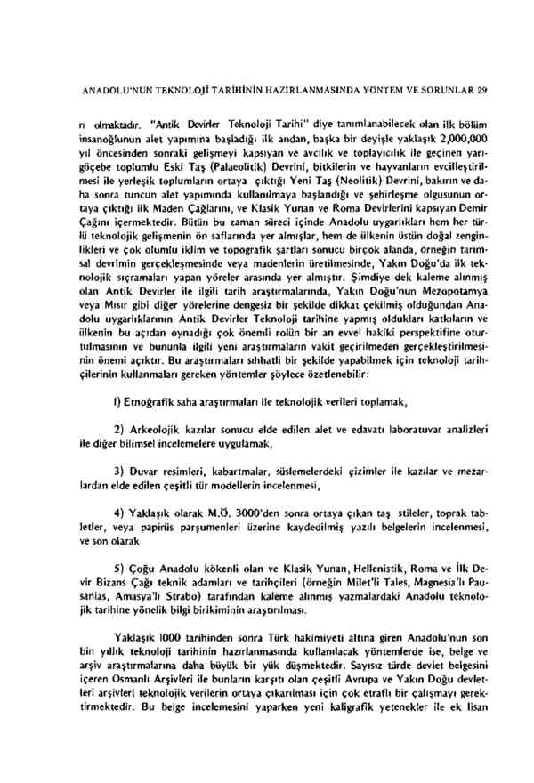 Anadolu'nun Teknoloji Tarihinin Hazırlanmasında Yöntem ve Sorunlar