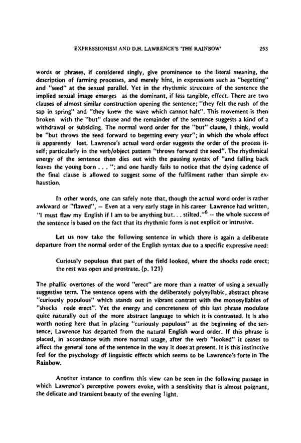Expressionism and D.H.Lawrence's 'The Rainbow'