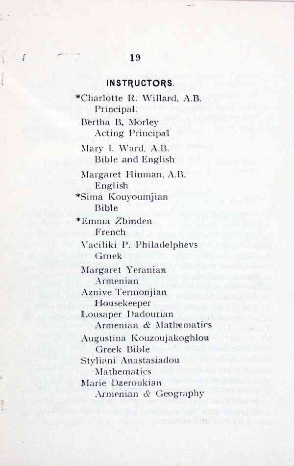 Pamphlet describing Anatolia College and girls' school admissions, programs, and resources, including lists of faculty and college students.