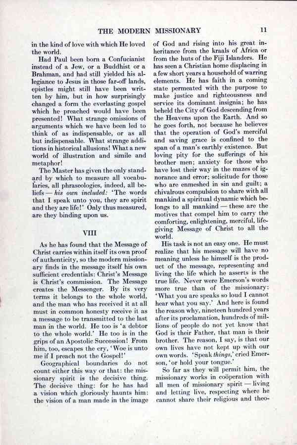 Reprint of an article from the Atlantic Monthly for May 1920, describing the outlook, aims, and work of the contemporary missionary.