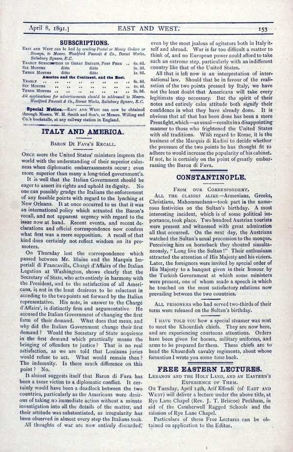 East and West, vol. 1, no. 9, April 8, 1891