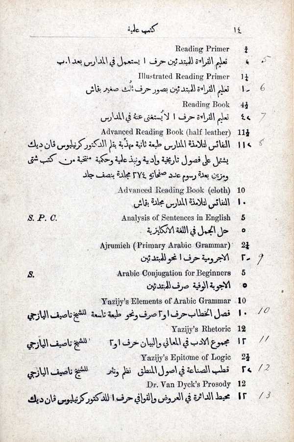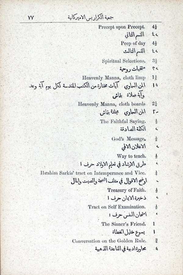 "Barnāmaj al-matba'at al-Amīrikānīyah / Illustrated catalogue and price list of publications of the American Mission Press, Beirut," American Research Institute in Turkey, Istanbul Center Library, online in Digital Library for International Research Archive, Item #11122, http://www.dlir.org/archive/items/show/11122 (accessed April 30, 2026).