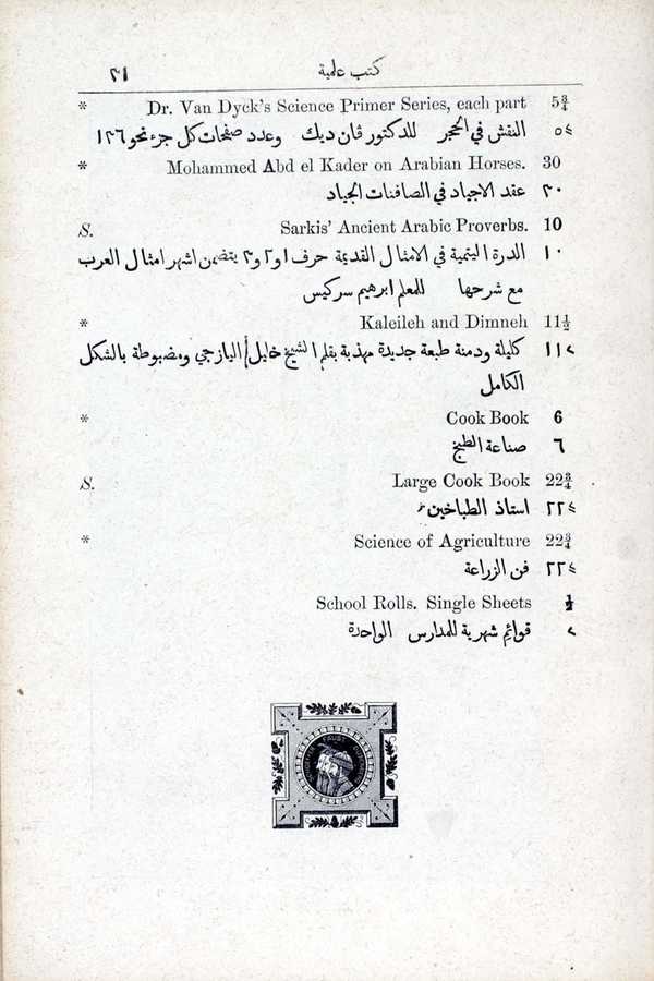 Barnāmaj al-matba'at al-Amīrikānīyah / Illustrated catalogue and price list of publications of the American Mission Press, Beirut