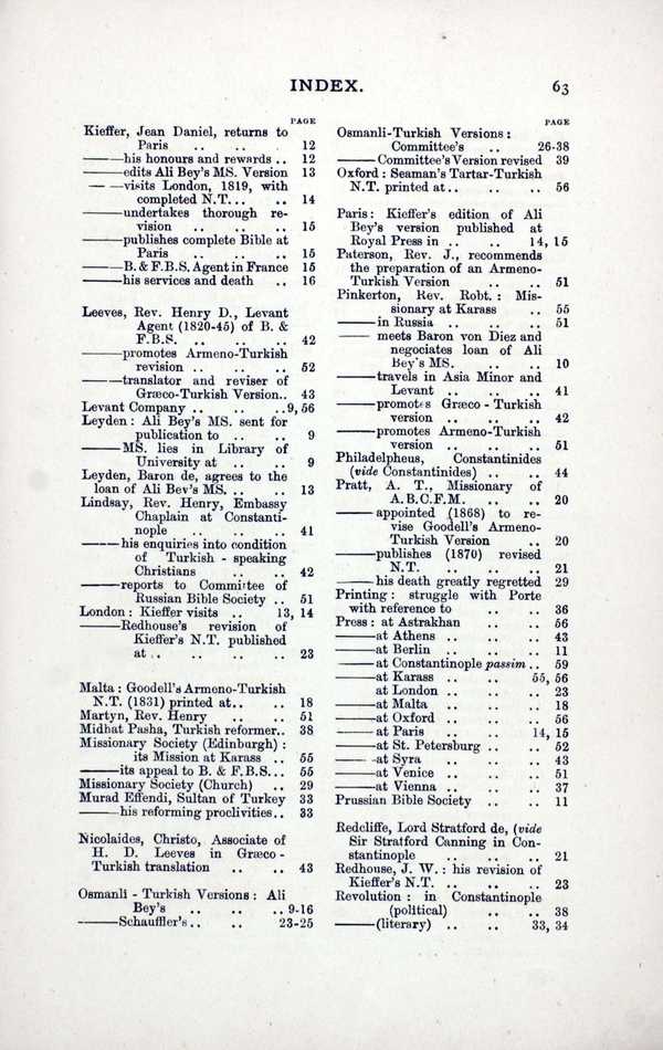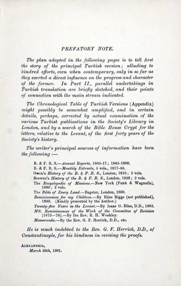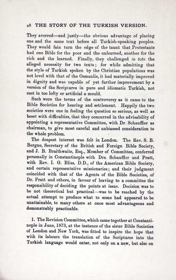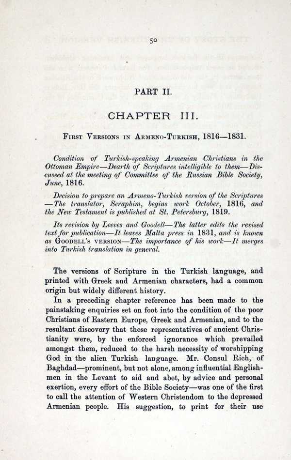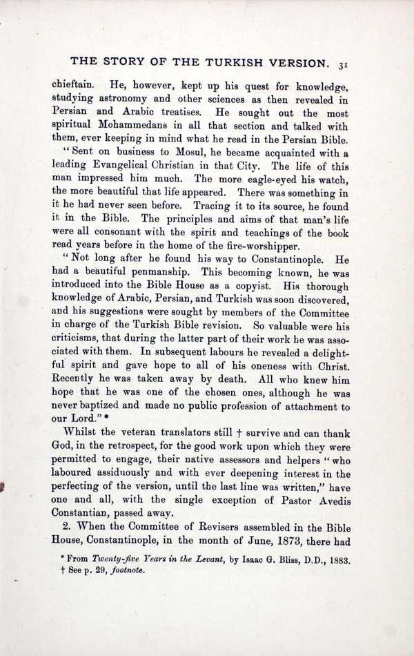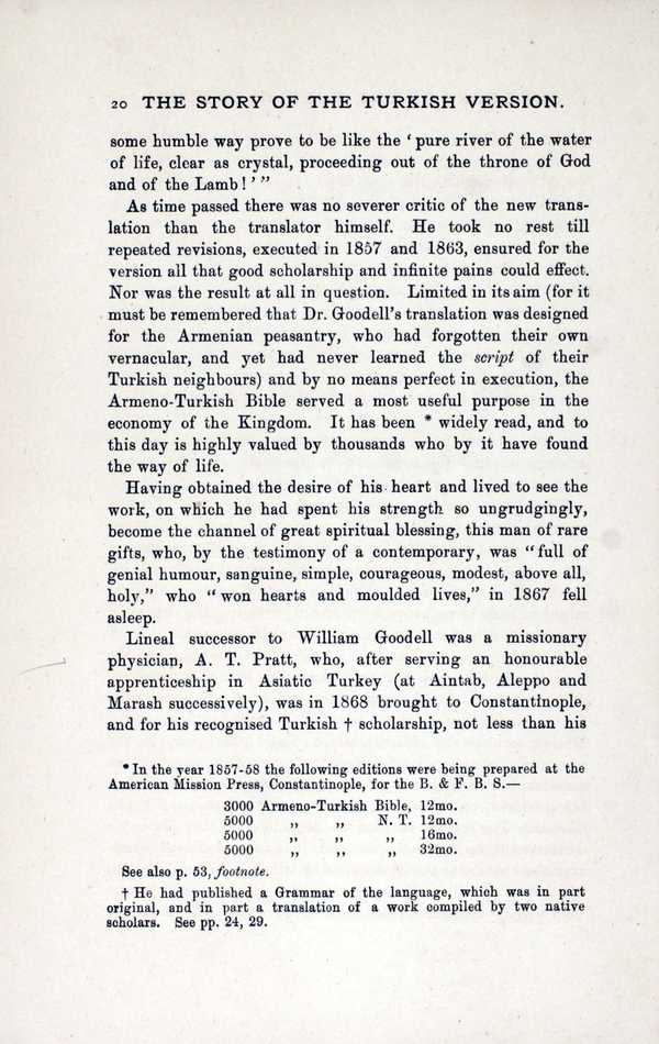 Account of the creation of the Ottoman Turkish version of the Bible, including information on versions in Graeco-Turkish, Armeno-Turkish, and Tartar Turkish.