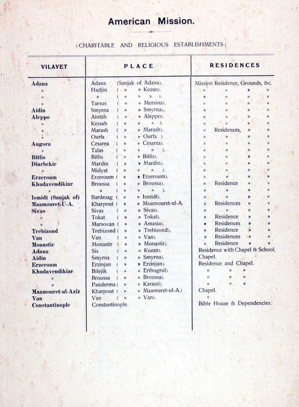 "List of American educational, religious, and charitable institutions in the Ottoman Empire," American Research Institute in Turkey, Istanbul Center Library, online in Digital Library for International Research Archive, Item #11159, http://www.dlir.org/archive/items/show/11159 (accessed April 30, 2026).
