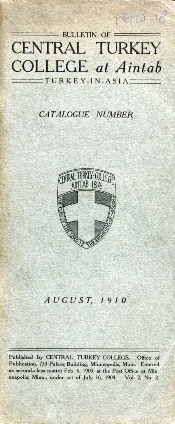 "Bulletin of Central Turkey College at Aintab," American Research Institute in Turkey, Istanbul Center Library, online in Digital Library for International Research Archive, Item #11306, http://www.dlir.org/archive/items/show/11306 (accessed April 30, 2026).