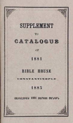"Supplement to catalogue of 1881 : Bible House, Constantinople, 1885," American Research Institute in Turkey, Istanbul Center Library, online in Digital Library for International Research Archive, Item #11480, http://www.dlir.org/archive/items/show/11480 (accessed April 30, 2026).