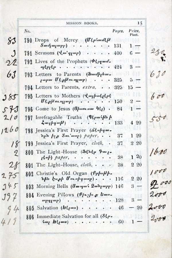 "Catalogue and price list of publications of the missions of the American Board, Bible House, Constantinople," American Research Institute in Turkey, Istanbul Center Library, online in Digital Library for International Research Archive, Item #11484, http://www.dlir.org/archive/items/show/11484 (accessed April 30, 2026).
