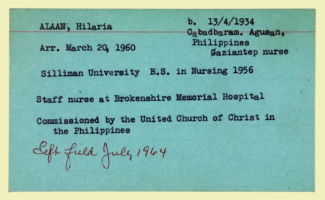 Personnel card and images for Hilaria Alaan, an employee of the American Board