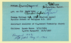 Personnel card for Charles R. Fowler, employee of the American Board