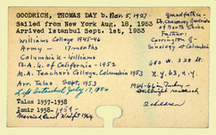 Amerikan Bord Heyeti (American Board), Istanbul, "Personnel records for Thomas D. Goodrich," American Research Institute in Turkey, Istanbul Center Library, online in Digital Library for International Research Archive, Item #12798, http://www.dlir.org/archive/items/show/12798 (accessed April 30, 2026).