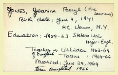 Personnel card for Jeanine B. Jones an employee of the American Board