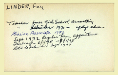 Amerikan Bord Heyeti (American Board), Istanbul, "Personnel records for Fay Linder," American Research Institute in Turkey, Istanbul Center Library, online in Digital Library for International Research Archive, Item #13247, http://www.dlir.org/archive/items/show/13247 (accessed April 30, 2026).