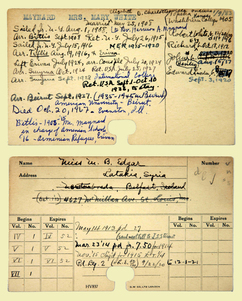 Personnel card for Mary E. White Maynard an employee of the American Board