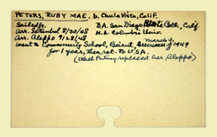 Personnel card for Ruby M. Peters an employee of the American Board