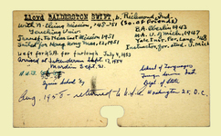 Personnel card for Lloyd B. Swift an employee of the American Board